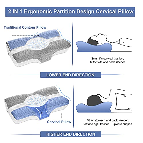 🌙ERGONOMIC PARTITION DESIGN: Proven Center and neck contour design perfectly support and aligns your head, neck, shoulder, and back. Provides natural spine support and scientific cervical traction for your body. Bringing a reduction of stress in the cervical vertebra and spine. Help you to breathe more freely and reduce snoring. You will wake up feeling fully recharged.