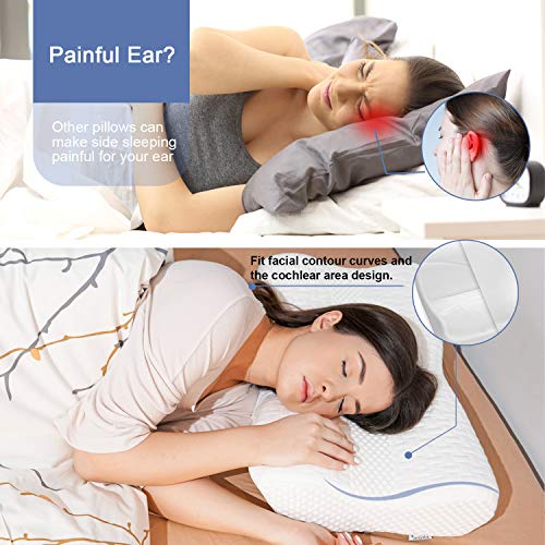 🌙SIDE SLEEPER FACE CURVE DESIGN: Both sides of the sleeping pillow are designed with facial contour curves and the cochlear area. When sleeping on your side, you can adjust the position to better fit your facial contour curves and reduce overall facial pressure. Ensure smooth blood circulation in the face and ears.
