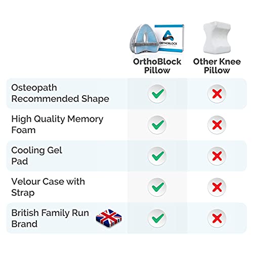 Specification: ORTHOBLOCK Knee Pillow incl. Osteopath Appraised Health and Wellbeing Care Guide, Velour Case With Cooling Pad and Knee…