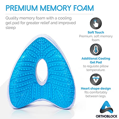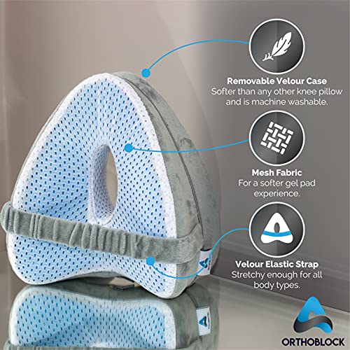 ORTHOBLOCK Knee Pillow incl. Osteopath Appraised Health and Wellbeing Care Guide, Velour Case With Cooling Pad and Knee…