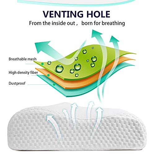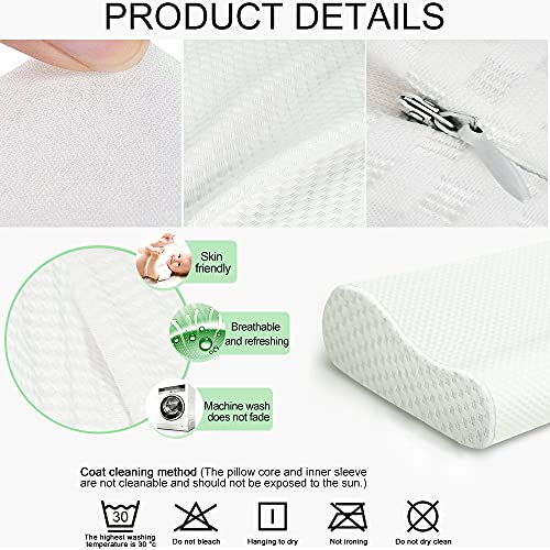 【Breathable & Easy to Clean】Viscoelastic memory foam pillow has excellent air permeability and can drain moisture produced during sleep. The pillowcase is made of anti-mite fabric, which is soft and skin-friendly. The pillowcase is removable and machine washable.