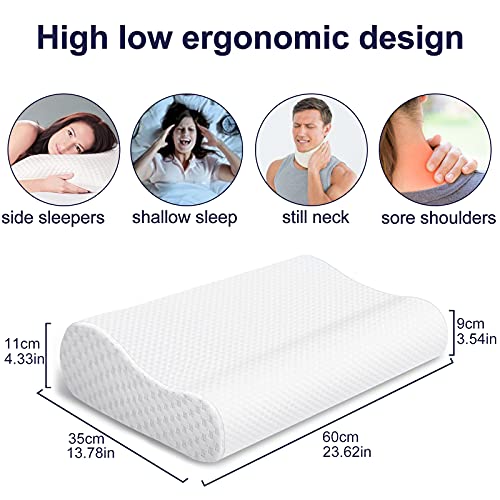【Two Heights Meet Different Needs】60 * 35cm neck support pillow adopts high-low curve design, which is in line with ergonomic design. The 9 cm low curve is suitable for people who are used to low pillows and sleep on their backs; the 11 cm tall curve is suitable for people who are used to high pillows.