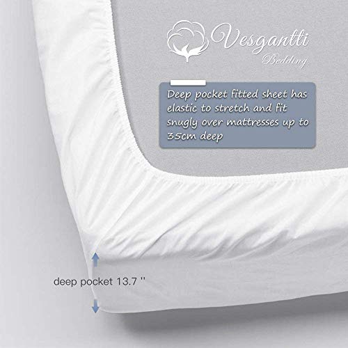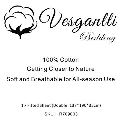Specification: Vesgantti Double Fitted Sheet, 100% Pure Cotton Fitted Sheet with Extra Deep Design, 250 Thread Count Fitted Bed Sheets…