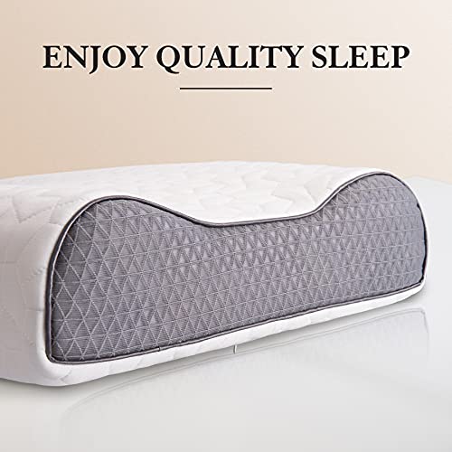 Supportive Memory Foam Pillow, Ergonomic Firm & Soft Adjustable Contour Pillow, Hypoallergenic Neck Pillow Cervical…