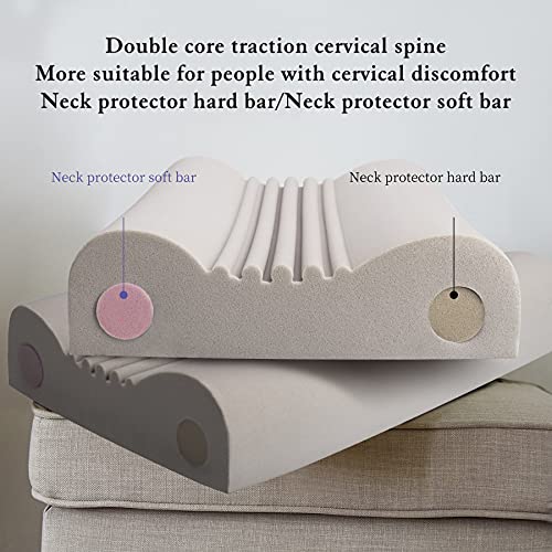 ✔ FIRM & SOFT MEMORY FOAM CONTOUR PILLOW – Measures approximately 60CM L x 40CM W with 11CM height double contour lobes. Fitted Cotton/Poly blend cover included. One lobe is inlaid with a hard support bar, another is a soft. The functional texture depends on your weight as the pillow reacts to allow maximum postural alignment. Someone likes firm pillows, some like soft pillows. Do what works best for you.