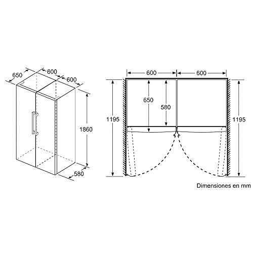 Specification: Balay 3GFF563XE Verticale vriezer, vrije installatie, 1 deur, 186 x 60 cm, roestvrij staal, anti-vingerafdruk